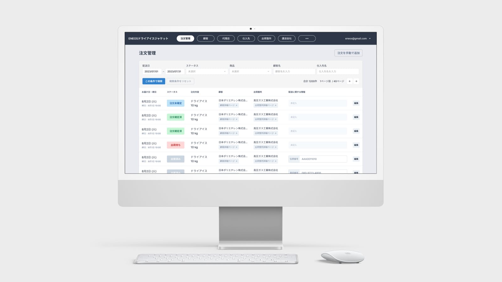 ドライアイスの受発注業務は、頻度が高く人的対応に多大な負担がかかっていました。 この課題に対して、発注企業から配送企業までデータがシームレスに連携する受発注システムをフルスクラッチで構築。 業務フロー全体の自動化を実現し、限られた人員でも大量の受発注を効率的に処理できる体制を実現しました。