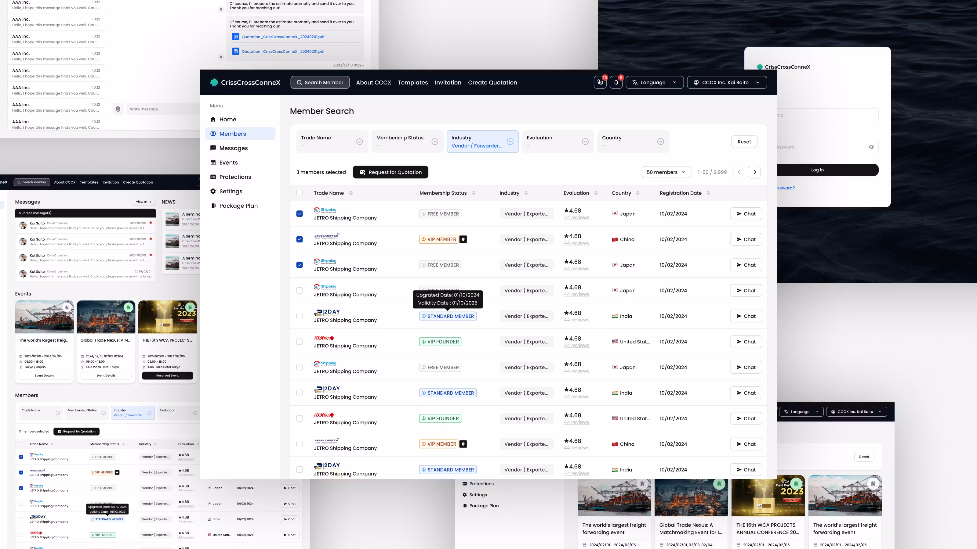 貿易業界の企業をオンラインでつなぐネットワークシステムを開発しました。イベント開催や複数業者への一括見積依頼が可能な機能を実装し、業務効率化と取引の透明性を向上。新しいビジネス機会を創出するプラットフォームとして機能しています。